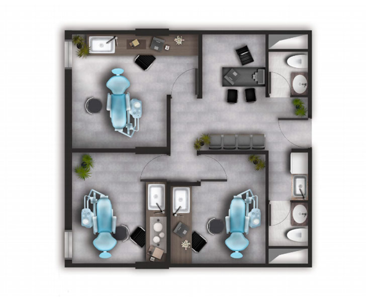 Condiciones técnicas especialmente diseñadas para médicos (Puntos de agua, luz y alcantarillado para sillas dentales en algunas oficinas, todas las oficinas con un segundo arranque de agua y alcantarillado, baños para minusválidos en todos los pisos).